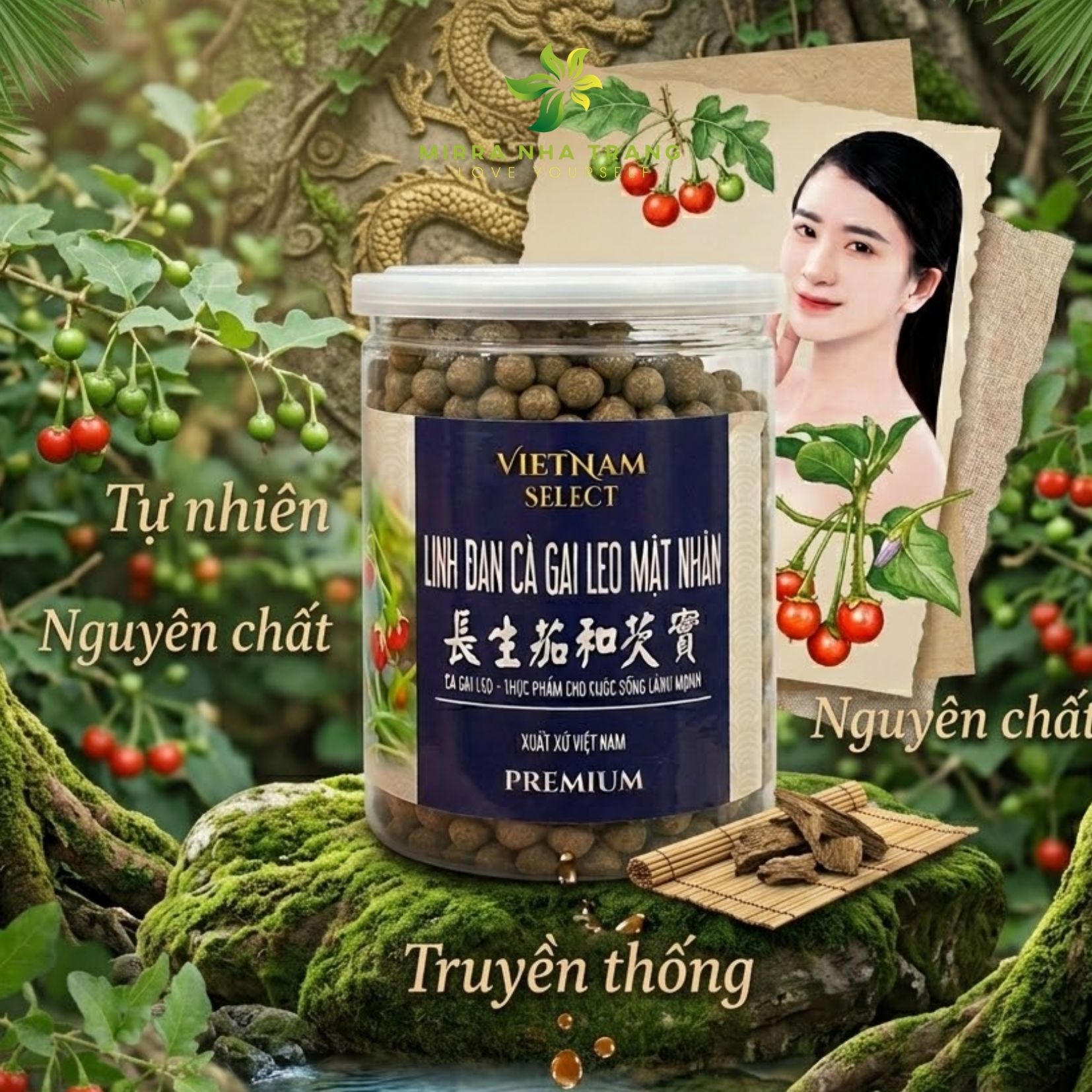 Состав: паслён широколистный (cà gai leo) — 92%, мёд — 5%, эврикома длиннолистная (mật nhân) — 3%.